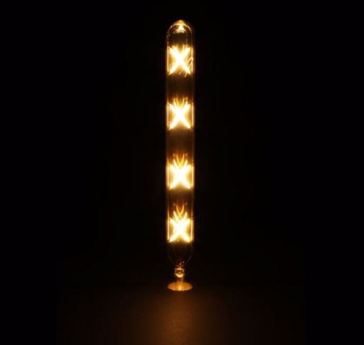 Global - 4w E27 Duylu, T30 - 22.5cm - Uzun Tip Çapraz Led Flamanlı - Boru Tipi Rustik Ampul - Bal Camlı - Amber