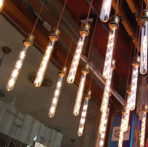 Global – 4w E27 Duylu, T30 – 22.5cm – Uzun Tip Çapraz Led Flamanlı – Boru Tipi Rustik Ampul – Bal Camlı – Amber
