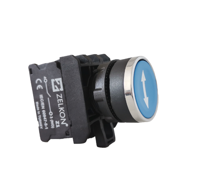 Mutlusan - 22mm Krom Kaplamalı İşaretli Plastik Mavi Yaylı Buton - N/O Kontak