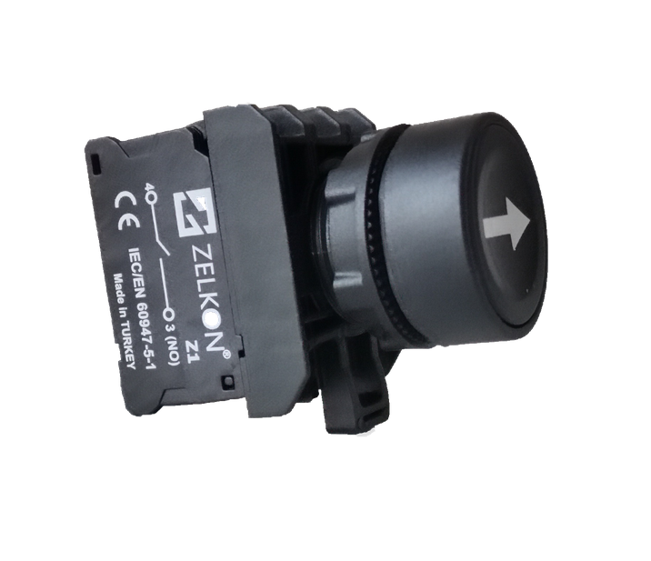 Mutlusan - 22mm Plastik İşaretli Siyah Yaylı Buton - N/O Kontak