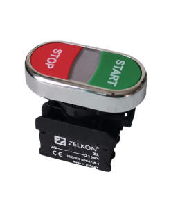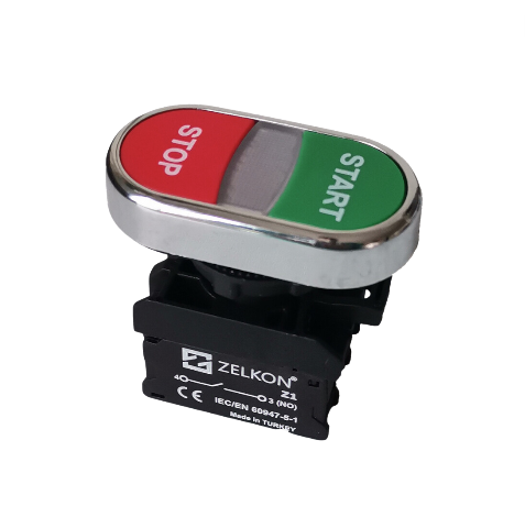 Mutlusan - 22mm Plastik Krom Kaplamalı Star+Stop İşaretli Yaylı İkiz Buton - N/C + N/O Kontak