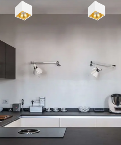 Universal – Beyaz + Gold Kasa Sıva Üstü 10x10cm Kare Led Spot Kasası (Duy+4000k Ilık Beyaz Ampul Dahil)