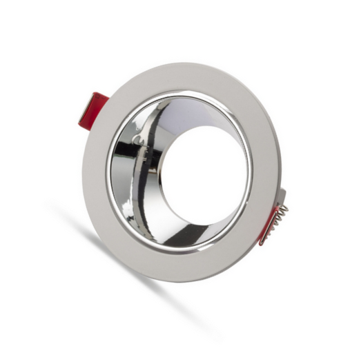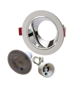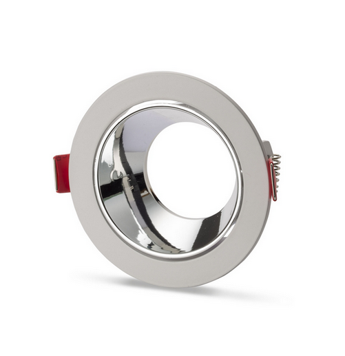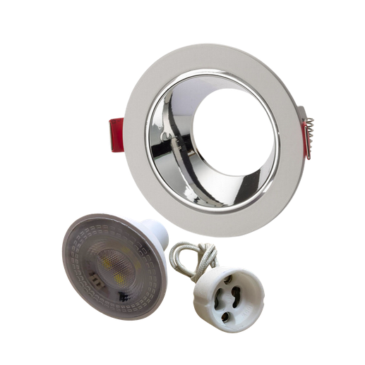 Universal – Beyaz Kasa + Krom Reflektörlü – Yuvarlak Dekoratif Boş Led Spot Kasası (Duy+6500k Beyaz Ampul Dahil)