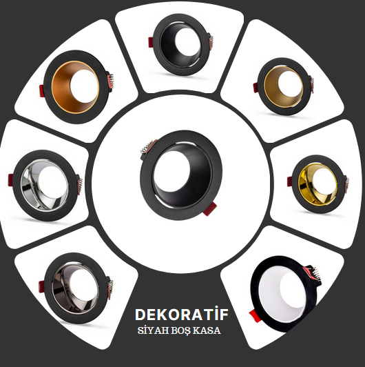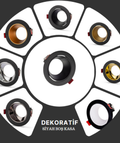 Universal – Beyaz Kasa + Sarı Reflektörlü – Yuvarlak Dekoratif Boş Led Spot Kasası