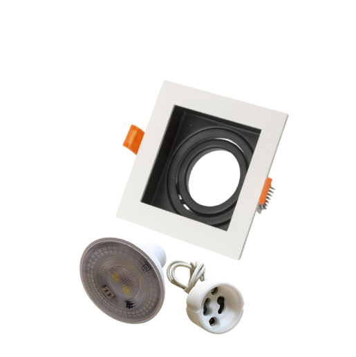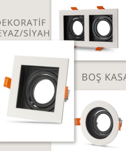 Universal – Beyaz + Siyah Alüminyum Döküm Kasa Kare Dekoratif Led Spot Kasası (Duy+6500k Beyaz Ampul Dahil) (Kopya)