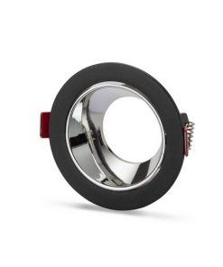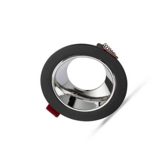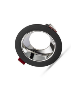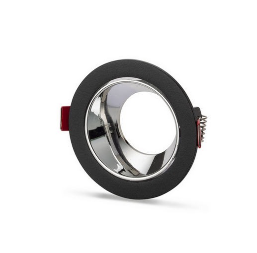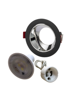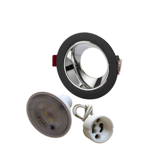 Universal – Siyah Kasa + Krom Reflektörlü – Yuvarlak Dekoratif Boş Led Spot Kasası (Duy+6500k Beyaz Ampul Dahil)