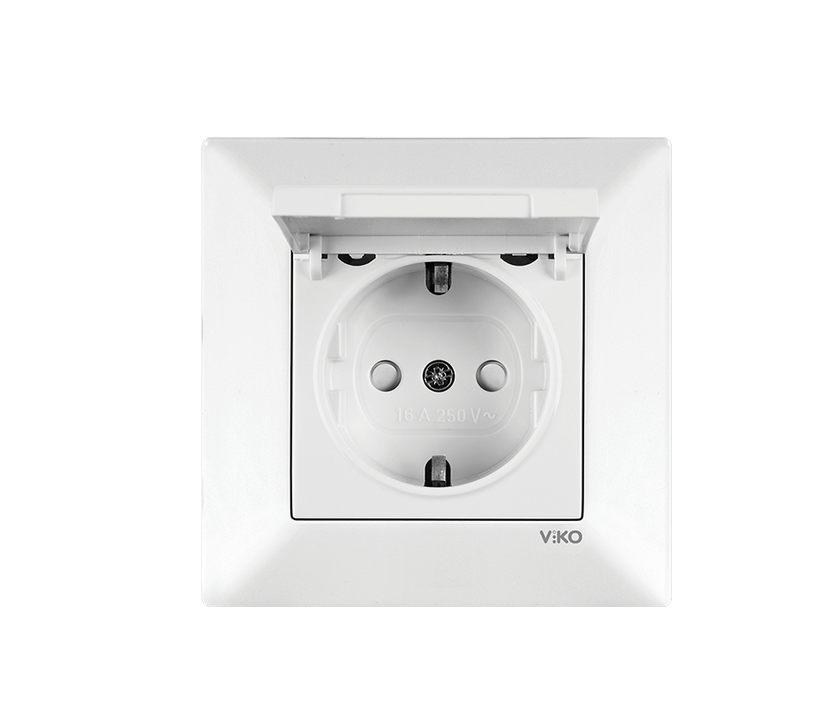 Viko Meridian Beyaz Çocuk Korumalı Kapaklı Topraklı Priz (Çerçeve Dahil)