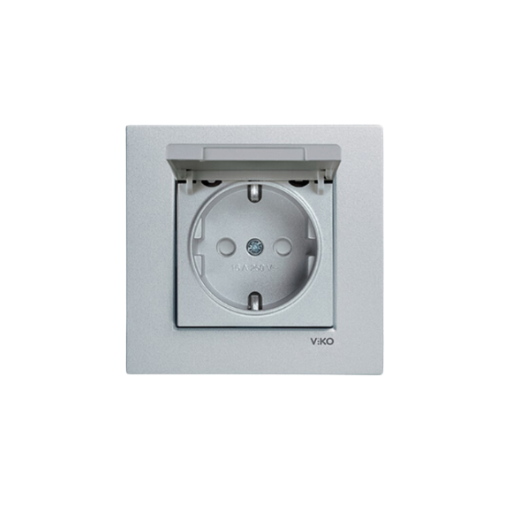 Viko Novella Gümüş Gri Çocuk Korumalı Kapaklı Topraklı Priz – (Çerçeve Dahil)