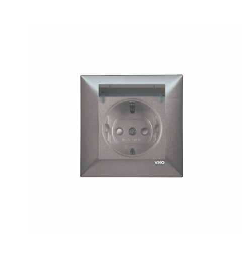 Viko Trenda Füme Çocuk Korumalı Kapaklı Topraklı Priz – (Çerçeve Dahil)